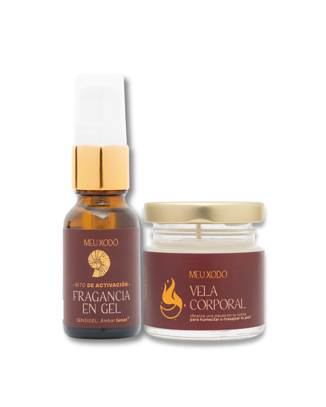 Este kit une la fragancia en gel Ámbar Lunar y la vela corporal para masajes, creando un momento de activación a través del aroma, el tacto y la presencia. La fragancia despierta y acompaña; la vela se transforma en aceite tibio que invita a habitar la piel con lentitud y conciencia.